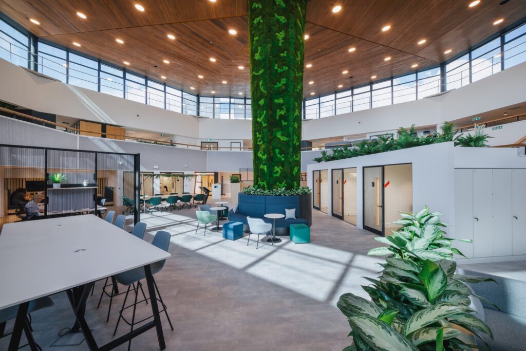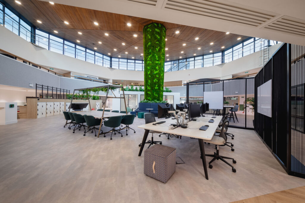 The office can accommodate 550 employees and includes 300 dedicated desks, 240 hot desks, and 45 well-appointed meeting rooms, which facilitate collaboration and seamless team communication. Ten breakout spaces have been strategically placed to foster creativity and relaxation, offering areas for informal discussions and moments of respite.
