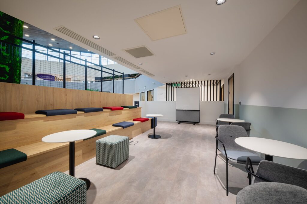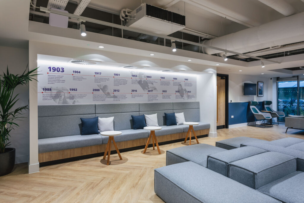 So, when its three-storey Manchester-based HQ required a significant refurbishment, Claremont was called upon to transform it into an open and flexible workspace that accommodates AQA’s fluctuating headcount, supports hybrid working, aids collaboration and delivers on the charity’s increasing commitment to sustainability.