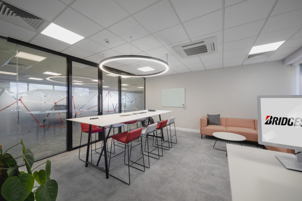 Bridgestone’s vision was to create a workspace that tells its brand story, engenders collaboration and connection and can accommodate personnel from its group businesses First Stop and Webfleet Solutions, which was previously based in London.
