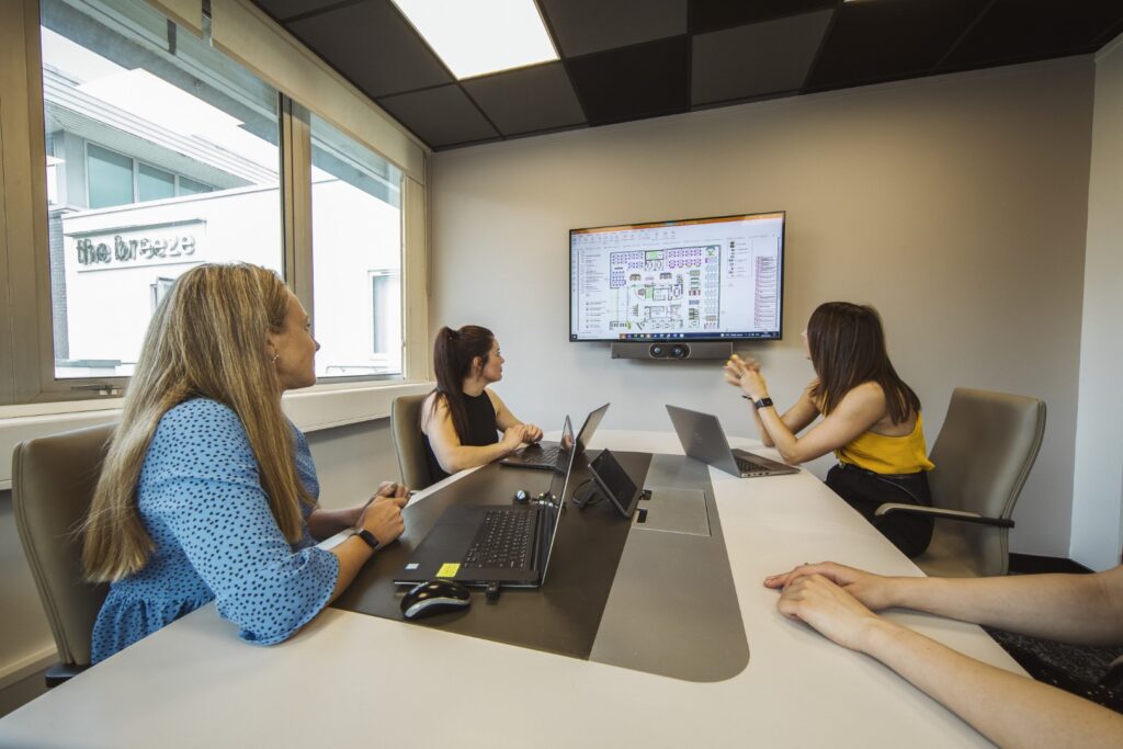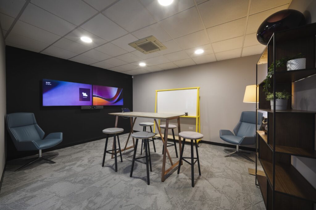 - A redesigned boardroom with a full wall whiteboard and collaboration bar for team building and brainstorming. Its design and integrated technology enable positive hybrid meeting experiences, ensuring those dialling in feel included, not just a fly on the wall.