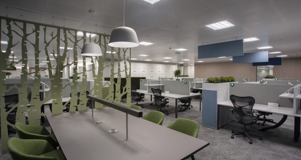 The overall design concept combines agility, sustainability and biophilia to create a fresh, open-plan and elegant space where employees are encouraged to choose work settings in line with their tasks and day-to-day needs. The use of a natural colour palette, extensive planting and nature-themed acoustic screening has brought a sense of light, calm and wellbeing to the colleague-focused areas.
