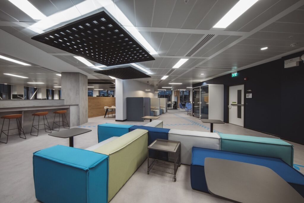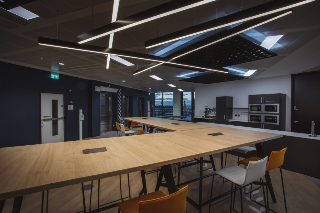 Boosting productivity, aiding collaboration, creating community, supporting recruitment and embracing hybrid working were all part of FanDuel’s ambition and vision for its new Edinburgh office – while also telling the story of the brand, which is part of the Flutter Entertainment plc.