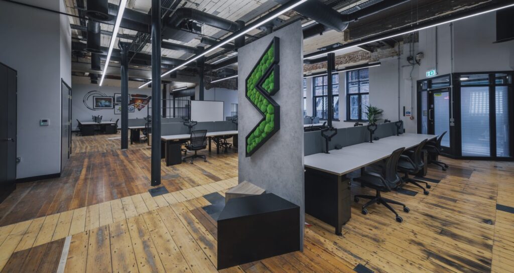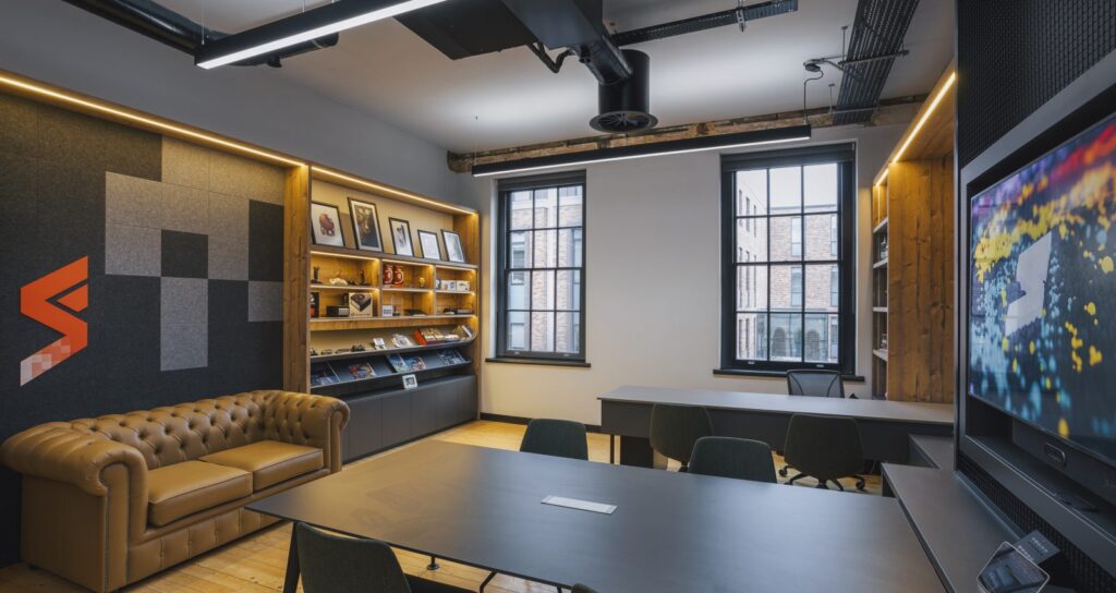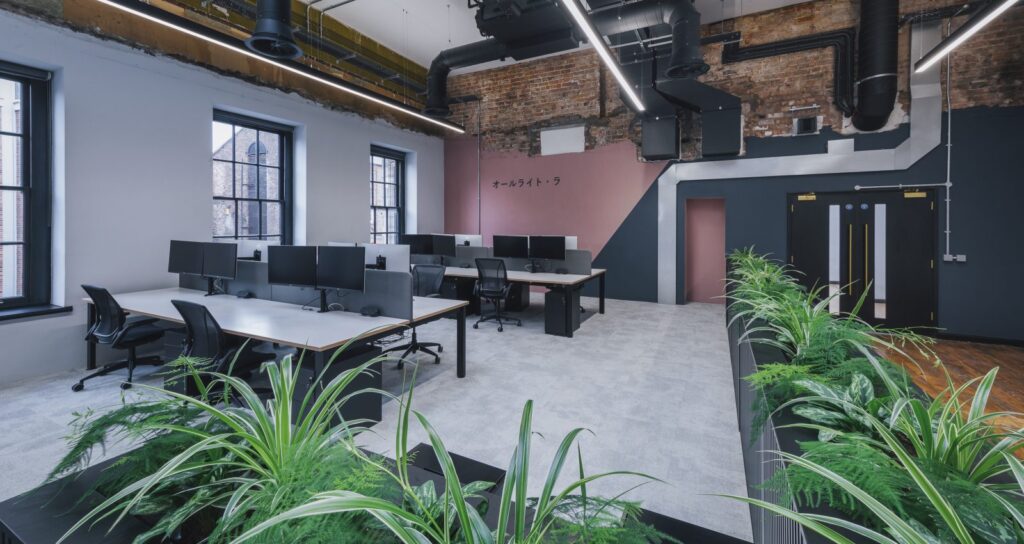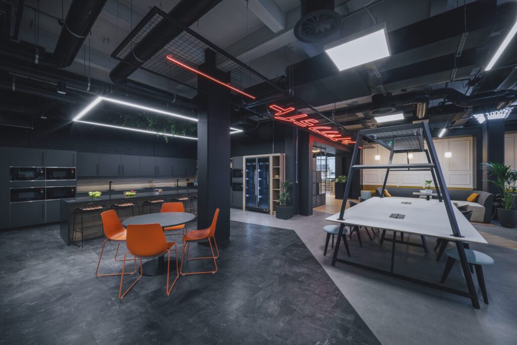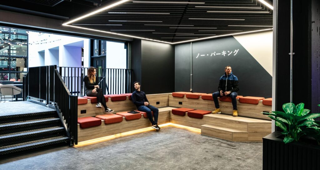 The building now offers an array of spaces with distinct individual personalities. From fantastic open-plan games development floors, state-of-the-art cellular games testing rooms, private scrum boxes for games reviewing games, huddle spaces with bleacher seating, to high spec kitchens with Japanese style ‘grab and go’ fridges.