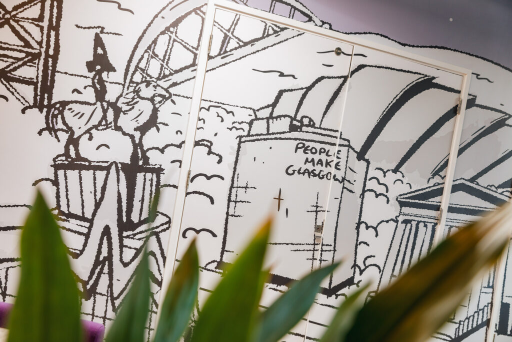 The team wanted a workspace that felt connected to the city and offered a sense of home. To reflect this, the artwork and meeting room names draw inspiration from Glasgow’s rich culture and vibrant community. To bring this vision to life, the design draws inspiration from the city’s rich culture and vibrant community.