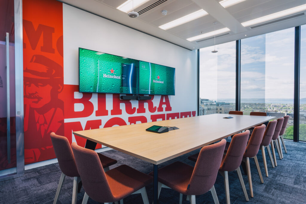 The final result is an office that perfectly reflects the Heineken brand, paying homage to the company’s Dutch heritage and providing their Edinburgh team a space that reflects the stature of the brand.