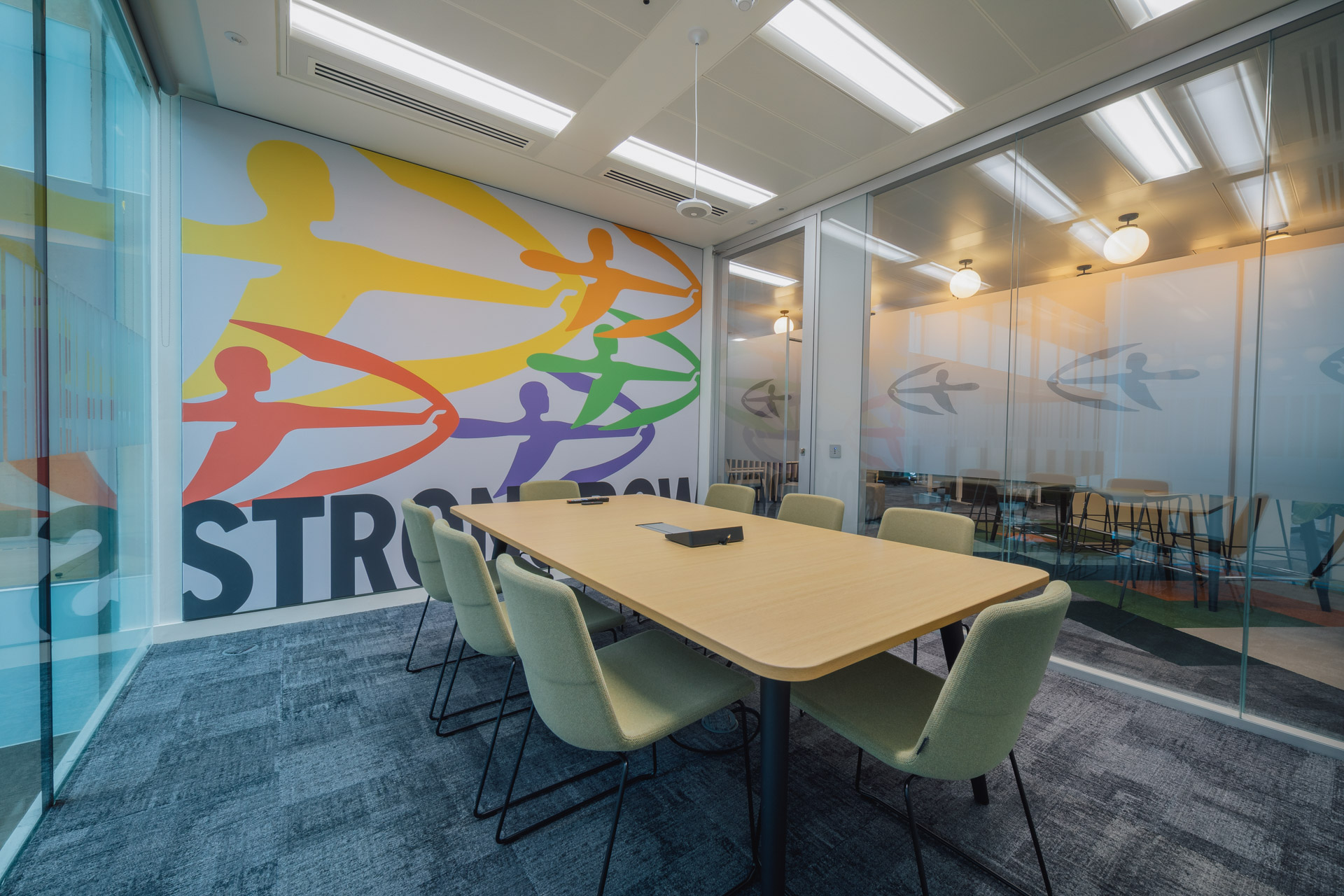 Flexible breakout areas allow for focused, collaborative, and social activity, enabling employees to work in an environment that best suits the needs of their particular task. Modular furniture and movable partitions allow the space to evolve with changing business needs, supporting both hybrid and in-person work.