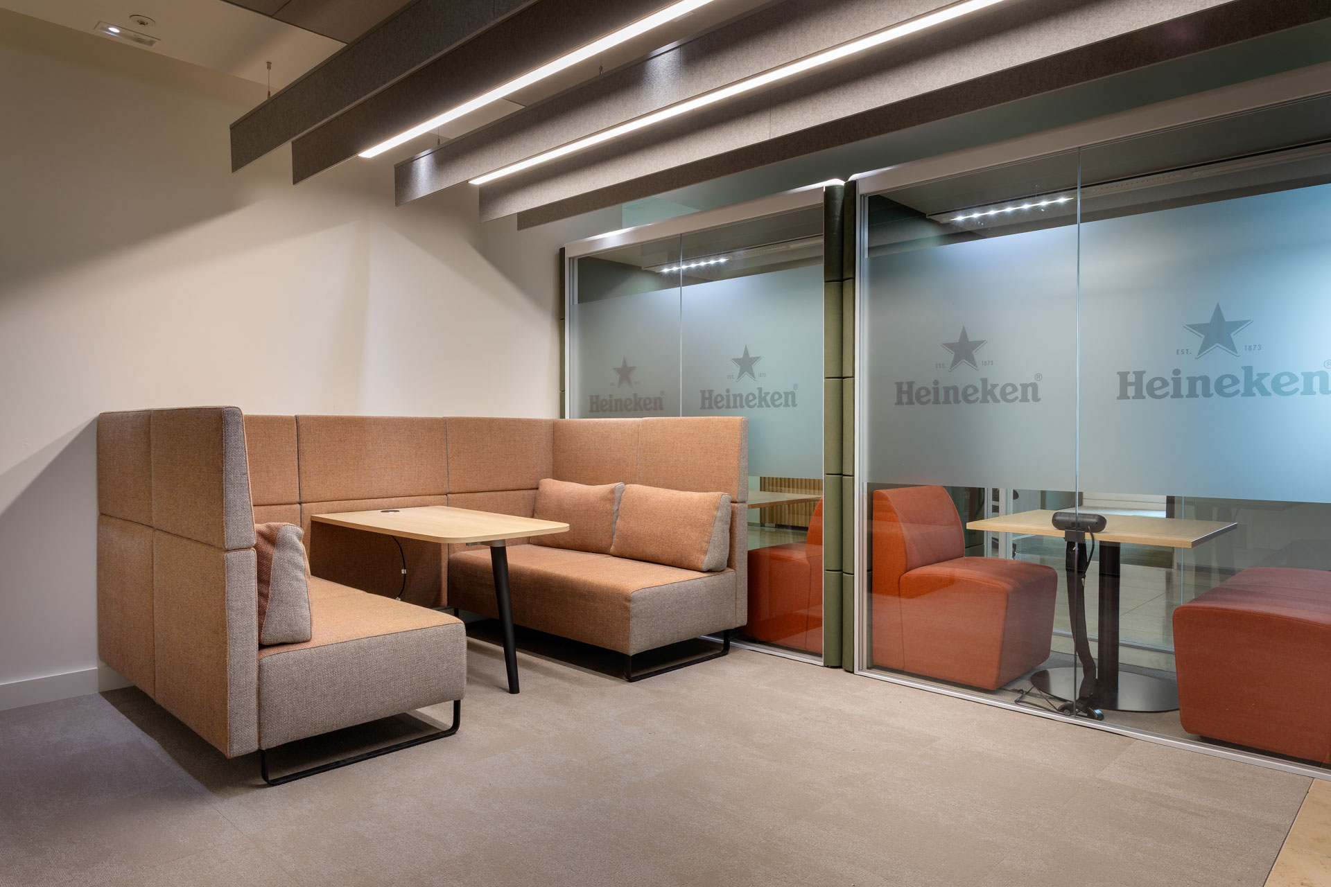 The space perfectly finds the balance between showcasing the Heineken brand and offering a functional space to streamline their day-to-day operations.