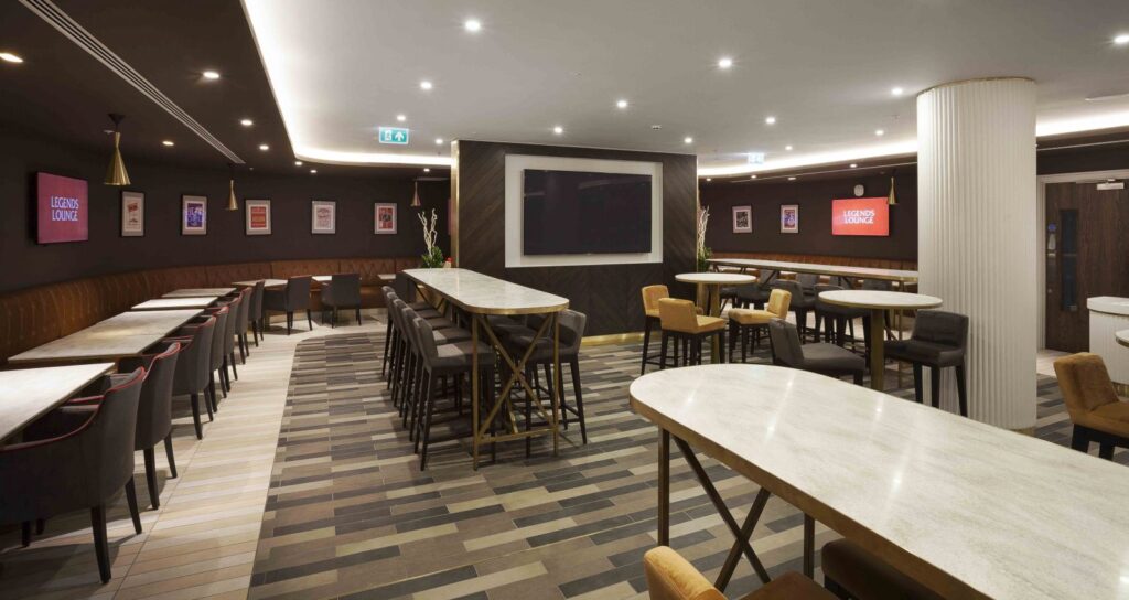 The finished stand challenges the typical notion of a football hospitality space, with a high-end finish and the careful selection of fixtures and fittings that really bring the space to life.