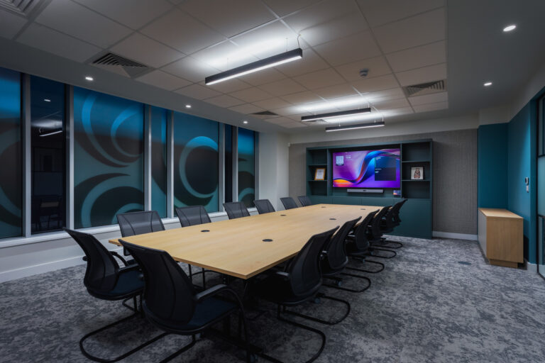 References to Birmingham are woven through the design in subtle, thoughtful ways. Each meeting room is named after a local area and features acoustic detailing inspired by that place from Longbridge’s nods to the Mini, to Digbeth’s reference to The Bond, to Edgbaston’s patterns based on the Joseph Chamberlain Memorial Clock Tower.