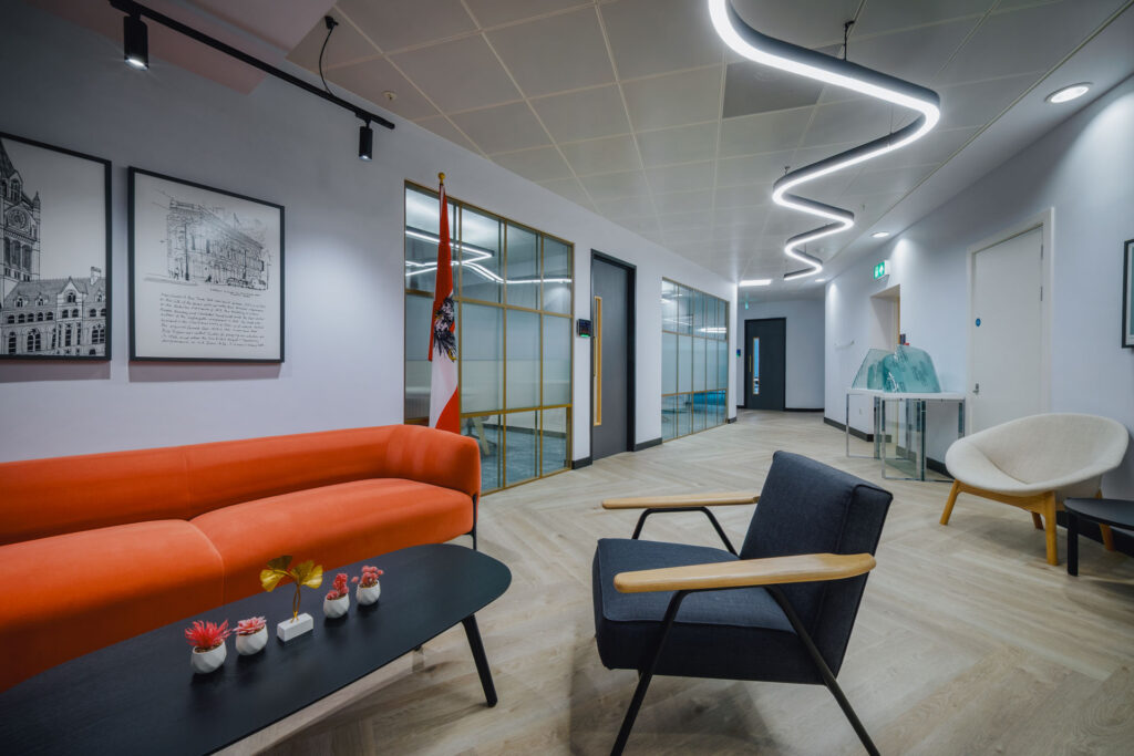 Inclusion and accessibility are central to the design, with special touches for mobility needs, diverse working styles, neurodivergent employees, and wellbeing. It’s even SKA silver certified, a nod to the project’s green side. From reusing the firm’s furniture to sourcing sustainable pieces from local suppliers, every detail keeps the carbon footprint low.