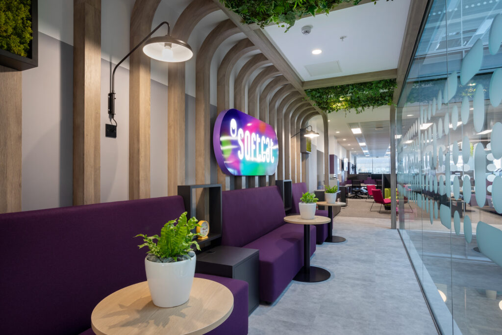 Completed over a 12-week programme, the finished space is a vibrant office that captures the energy of the city and brings the Softcat brand to life, supporting their growth in Dublin and ongoing expansion.