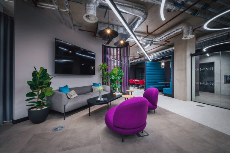 Our designers for the project reflected on their pride in how much reused products and materials were implemented without negatively impacting the final design. The amount used was unusual so navigating this and still creating a space that lives up to client expectations and reflects the Softcat identity was rewarding.