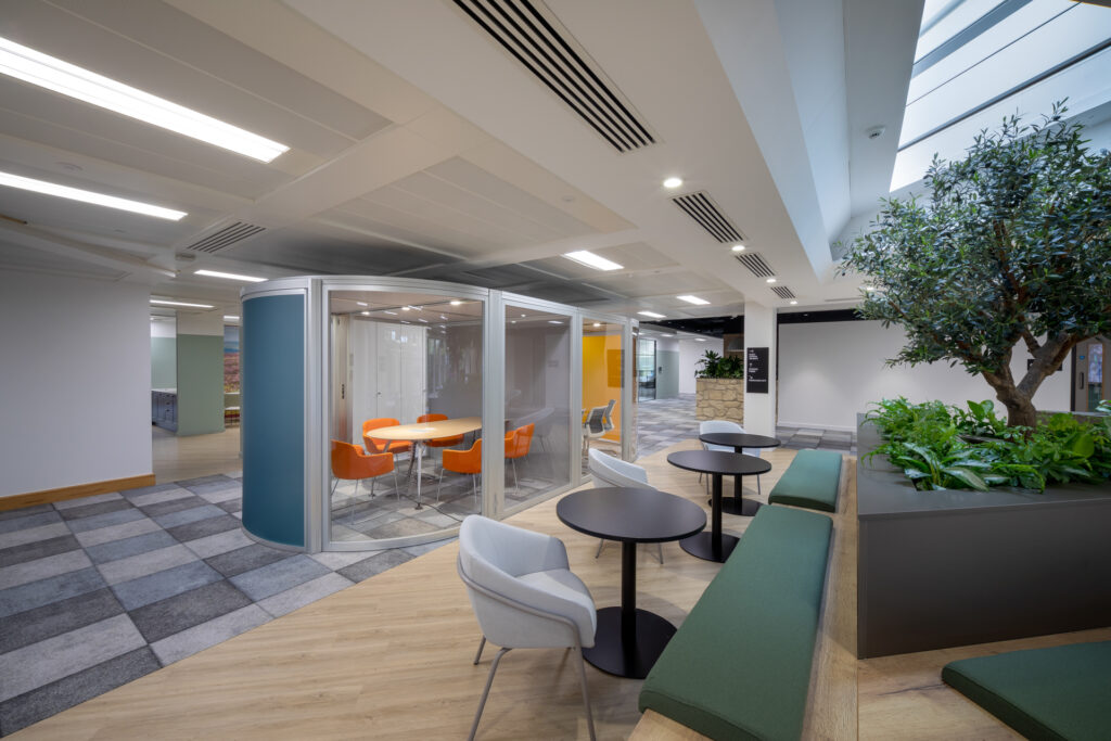 Better meeting spaces: Through introducing a variety of meeting rooms, better equipped with hybrid meeting technology, alongside private pods for 1-1 conversations, our post occupancy study showed a 236% increase in colleagues saying their workplace now supports external meetings and confidential conversations.