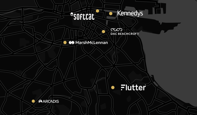 We’re proud to have transformed offices for some of the biggest names in the city, including Flutter, Softcat, DAC Beachcroft, and Marsh McLennan!