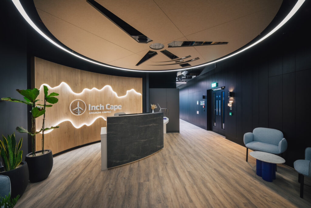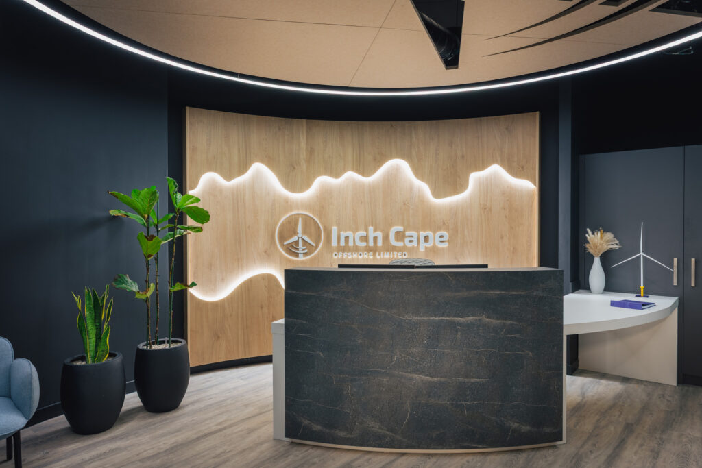 Inch Cape, a joint venture between Red Rock Renewables and ESB, required a workspace that would support a newly formed project team delivering a major offshore wind farm off the Angus coast. The brief was to create a welcoming, flexible environment that reflected the organisation’s values, encouraged collaboration, and supported hybrid working.