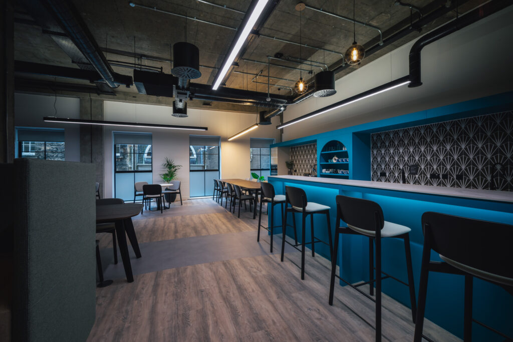 Claremont transformed a central Edinburgh Cat A office into a smart, multifunctional workspace designed around how the team actually works. Despite its compact footprint, the space balances focused work with collaboration and social connection, strong brand identity, and thoughtful accessibility woven throughout.